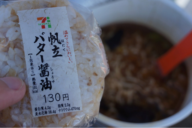 早いランチにおにぎりとラーメン。