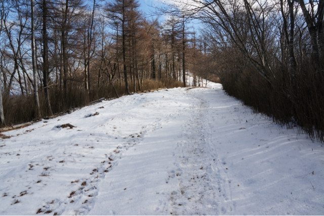 しかもところどころ雪やぬかるみで滑ります。ポール必須。
