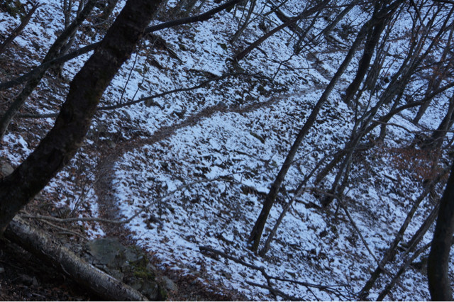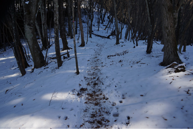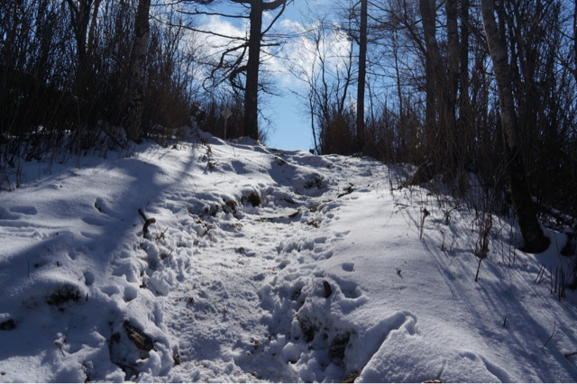 でもすぐこの通り。雪の急登なのでツルツル滑ります。アイゼン忘れた。