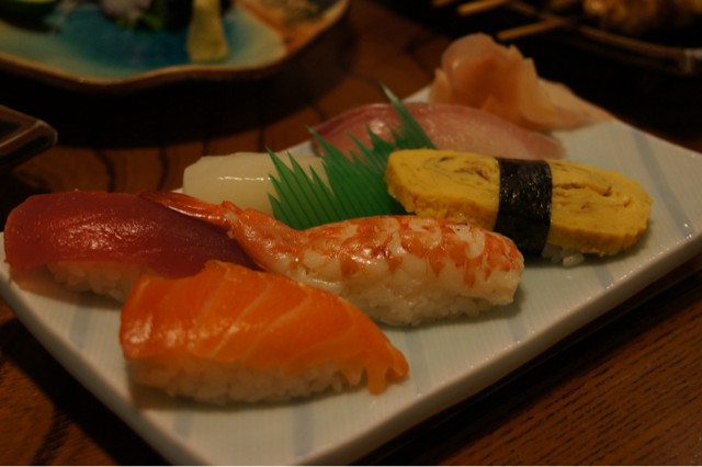 夜は友達とおいしい寿司をいただく。