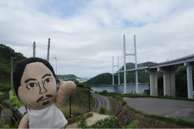 そんな、本来は夕暮れ時に走りたい外海エリアから、長崎湾にかかる女神大橋。