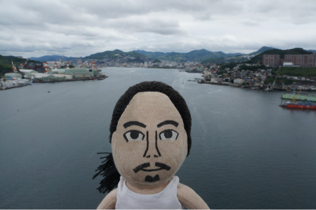 うっすら軍艦島も見えます。つーか、腹減り過ぎてファミマでおにぎり食ったった。