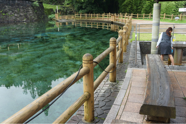 栗野駅真裏にある遊水池の丸池。すんごい綺麗。