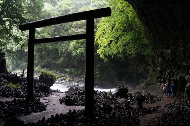 7月4日。天岩戸神社で神域の天岩戸を見せてもらう。お祓い。
