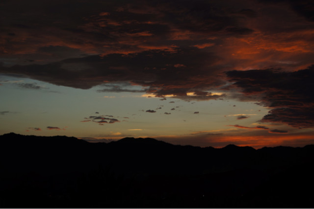 その日の夕焼け。炭の中で炎がチロチロ燃えているような。