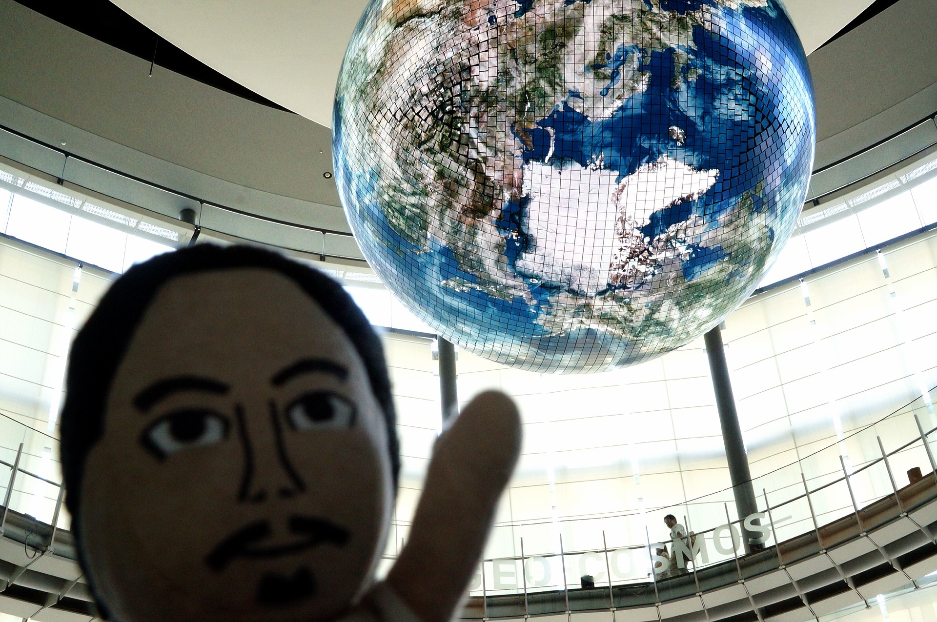 今日はSRシステムを使ったパフォーマンスアートMIRAGEを体験しに、お台場の日本科学未来館に行ってきました。実は科学未来館じたい、初めてです。前々から地球型モニターのGeo-Cosmosが見てみたかったのですが、なかなか立ち寄るチャンスがなかったのです。今朝たまたまフォーゼのアストロスイッチセットEX フュージョンスイッチ スペシャルセットが届いたので一緒に撮影してみました。ほら、同じ地球型だし。