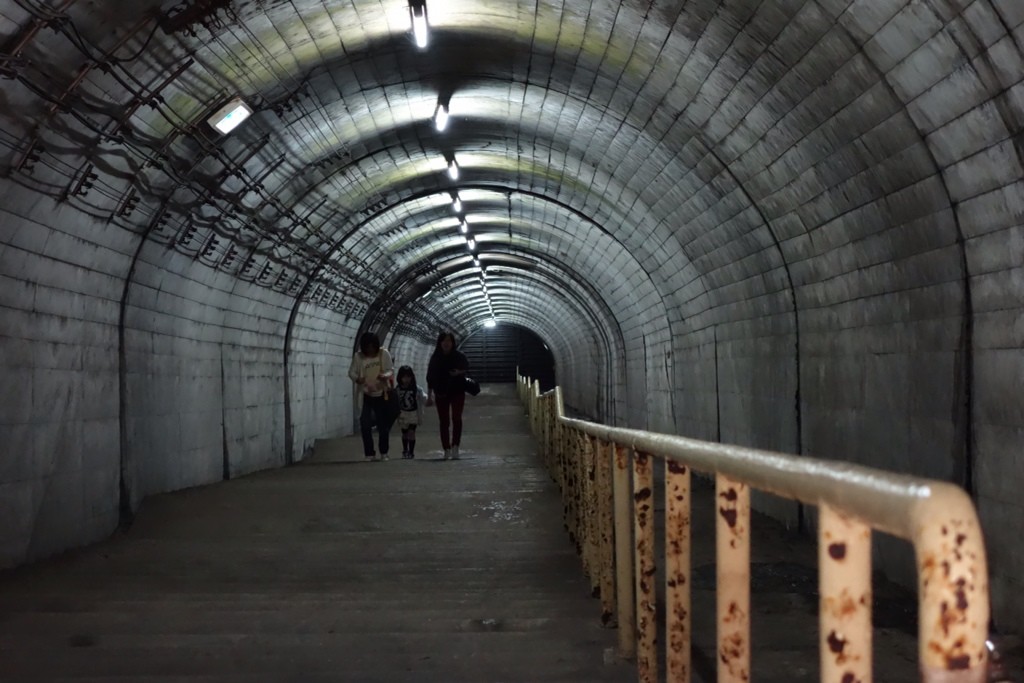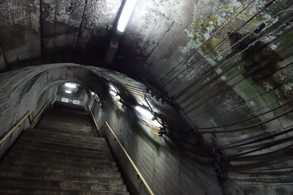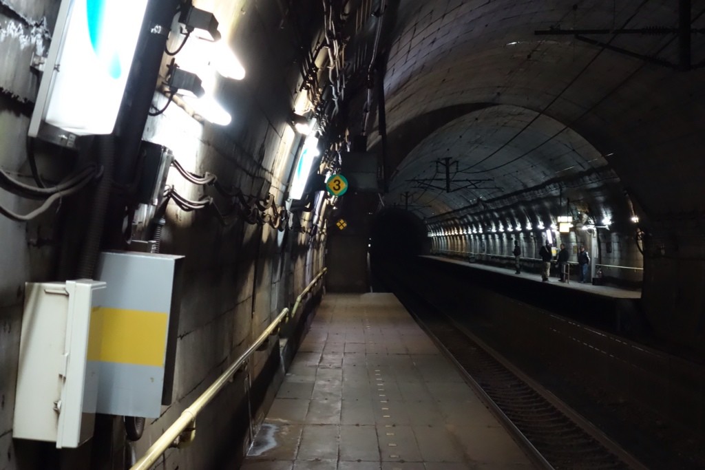 駅改札から階段をひたすら下るトンネル駅。