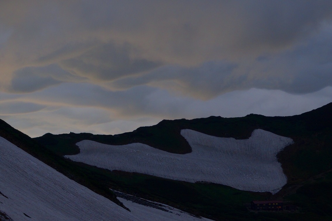 寝袋買っちゃったよエントリでお伝えしておりましたように、梅雨明け一発目のお山遊びで、北アルプスは剱岳点の記に来ております。「点の記」って居酒屋みたいですね。予報によると台湾の台風10号の影響で今日は全国的に高気圧に覆われるはずなのですが、ご覧の通りの雨模様です。