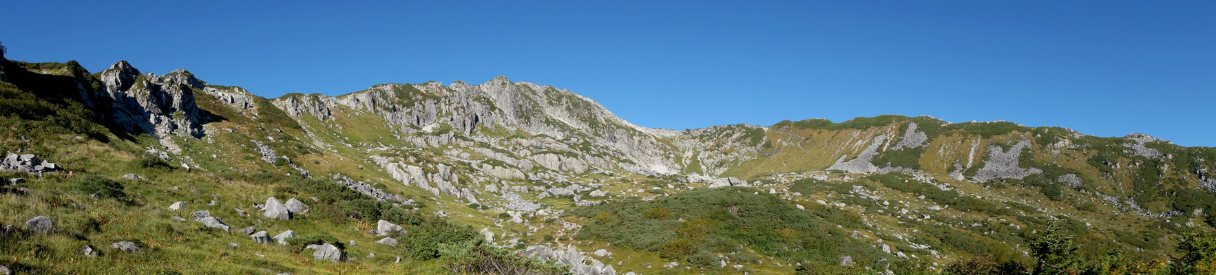振り返ると昨日はガスって何にも見えなかった双六岳、三俣蓮華岳。向こうにはヤリも。