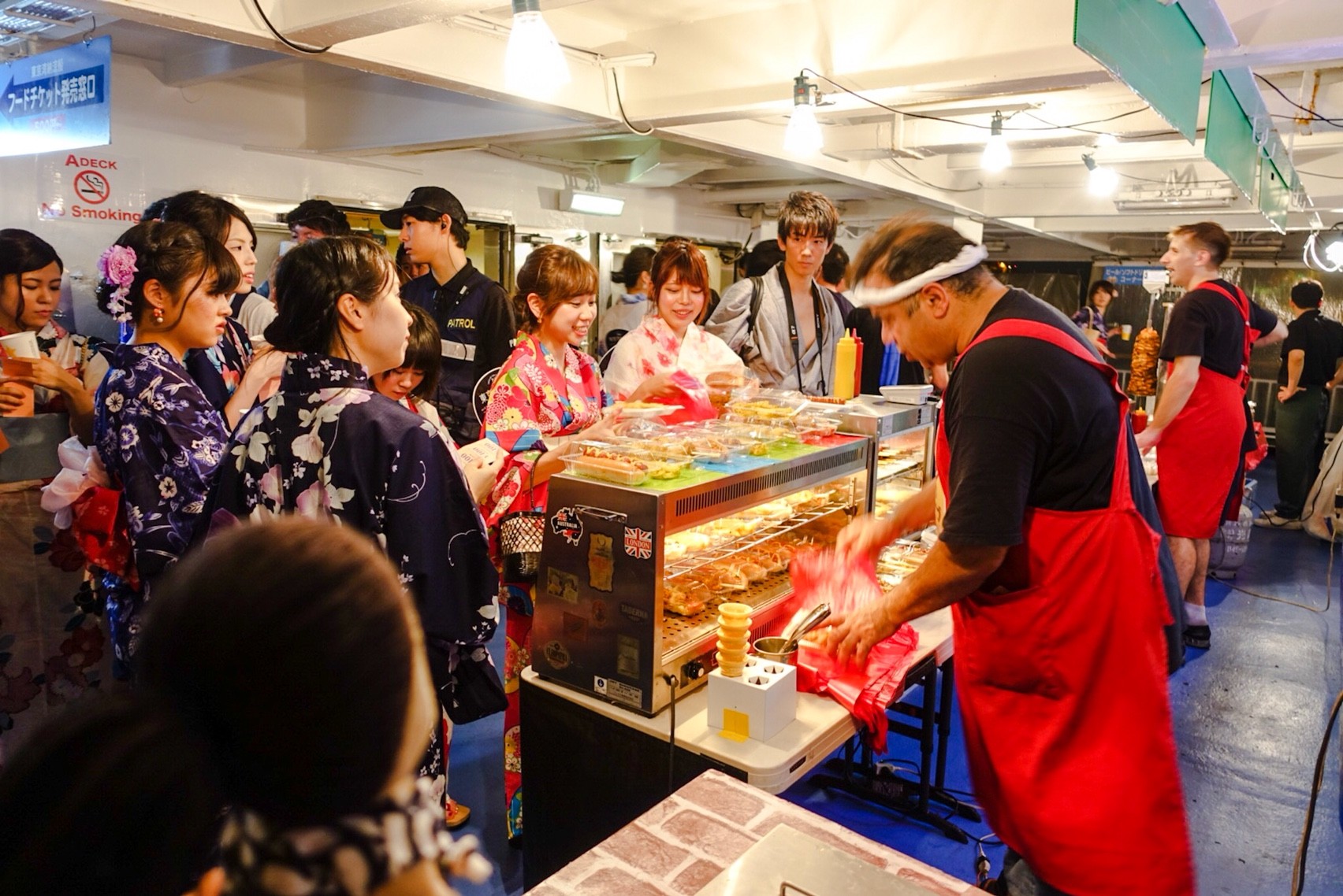 船内では飲み放題のほか、さまざまな屋台があります。