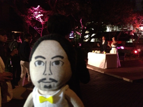 今夜はTwitter婚したカップルの結婚パーリーに来ております。六本木のTEIEN TOKYOにて洒落乙ですが、外なので非常に寒いです。気温的に。ミニくまちゃんは、ちゃんと蝶ネクタイしておめかししました。以上!